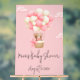 Baby shower ROSE SIGNER AVEC DES NUAGES ET DES BALLONS ROSES ET UN OURS À TEDDY.