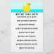 Unique baby shower game activity, featuring cute rubber duck art, a Mother Goose nursery rhyme quiz, and a place to include parenting advice.