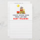 Creative baby shower game and parenting advice cards, featuring toy train themed design for mommy-to-be.
