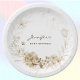 These 7" round party plates are designed with beautiful Dutch watercolor still life florals from the 1600s, matching the baby shower collection. A circular border of sepia botanicals on a white background. Change name and text using the Template provided. Also available in 9" round plate and 7" bowls. Sold in sets of 8 and printed on durable paper stock. See "About This Product" at side for more information.