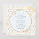 Invitation au baby shower d'or sur le thème des abeilles avec un motif de nid d'abeille en or et des abeilles en effervescence. Personnalisez avec vos informations ou cliquez sur "Cliquez pour customiser plus loin" pour modifier les styles, la taille et les couleurs des polices.