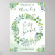 This watercolor baby shower poster features a greenery wreath with watercolor leaves and foliage. Personalize it with a name and date. This poster is part of a collection featuring a full range of matching baby shower products. Please view the collection page or visit our store to see the full range.