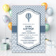 Invite your friends and loved ones with this grey and white hot air balloon baby shower invitation which is decorated with polka dots and chevron stripes.