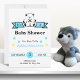 Teddy bear with banner on white background baby shower invitation for boy. The card is completely customizable, you can edit text, and colours on both text and design, even the background colour can be customized. It features simple, contemporary lettering and circle accents for a fun, casual get together rejoicing in that special moment to be. If you need help customizing this card contact designer at ArtByLiz@gmx.com and it will be customized for you at no extra charge.