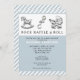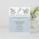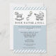 Classy and creative baby shower invites featuring silver charms and funny line.