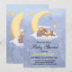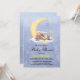 Baby shower invitation décorée d'un adorable lapin dormant sur la lune.
