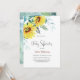 Baby shower invitation card decorated with watercolor sunflowers.