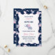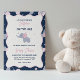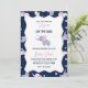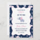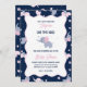 Baby girl shower invitation featuring cute baby elephant pattern with pink and grey elephants and cute pink flowers on a dark blue custom background.