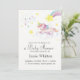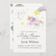 This image showcases an elegant baby shower invitation design with a whimsical unicorn and dreamy cloud theme. The soft pastel colours, along with adorable illustrations of a sleeping unicorn and scattered stars, create a warm and delicate feel. At the centre of the design, a stylish text invites loved ones to celebrate this joyful occasion.