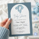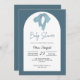 Featuring cute blue colors, a stylish bow design, and a trendy layout, this customizable invitation is perfect for summer or winter baby showers, making your celebration unforgettable.