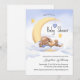 Baby shower invitation decorated with an adorable bunny sleeping on the moon.