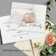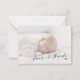 Minimalist stylish chic baby shower elegant hand lettered calligraphy script personalized small thank you note card with transparent overlay photo, your custom text, and signature on both sides.