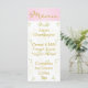 Baby Shower Menu "Gold Pink Birds"