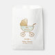 Cute favour bags to thank your baby shower guests. This minimal gender-neutral design features a retro pastel mint green and gold baby carriage watercolor. You can personalize the mother-to-be's name in a stylish script, personalize the text on the baby carriage and add the shower date.