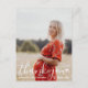 Personalize these minimalist elegant Baby shower thank you cards with a beautiful photo of yourself with your lovely bump or of your newborn baby. Thank your family and friends who have showered you with their love and introduce your new baby with an image they can cherish for many years to come. The cards feature modern elegant "Thank You" handlettering script with a tiny heart and simple typography custom thank you message on the reverse. A wonderful way to thank your baby shower guests once baby is born! Please mind, that the handritten text is in white and it would look better on the darker background photo.