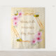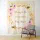 Elegant, fun, summer baby shower tapestry. Yellow, white background with a honeycomb pattern. With a faux gold geometric frame. Decorated with pink tropical florals flowers, hibiscus and happy bumble bees. With the text: Mommy to Bee and the name of the mom-to-be. Template for the name and a date. Can be used as wall decor for the baby shower or as a photo backdrop.
