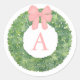 Handpainted boxwood wreath and big floppy bow are the perfect foils for this classic monogram sticker, perfect for sealing Baby Shower Invitation or Thank You Envelopes.