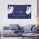 A navy blue background. The blue colour is uneven. Decorated with white balloons. Personalize and add a name, date. White letters. The name is written with a modern hand lettered style script.