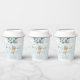 Add charm to your party drinks with these paper cups decorated with a cute bear holding balloons in blue and white. Ideal for a bear baby shower theme.