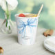 Baby shower paper cups with a delicate bow.