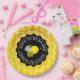 Plaque de baby shower à thème miel ou bourdon, jaune et noir neutre pour le genre.