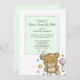 Un joli baby shower interurbain sans sexe par la poste invitation par la carte postale avec un ours en peluche fantaisiste avec du bétail, accompagné d'un texte de caractère fantaisiste sur une bannière vert menthe pâle. Un grand choix pour ceux qui ne peuvent pas être là, mais veulent participer à aider à donner à votre bébé un bon départ dans la vie. Customisez avec vos informations et le mois d'échéance.
