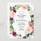 Long Distance Baby shower par mail invitation avec des branches de verdure aquarelle et de belles fleurs printanières dans les tons de rougeur, Bourgogne, crème et pêche balayant les coins du design. Un excellent moyen d'invitation à vos proches pour aider à surprendre la maman d'être avec des cadeaux pour préparer le bébé. Personnalisez avec vos informations ou cliquez sur "Cliquez pour customiser plus loin" pour modifier les styles, la taille et les couleurs des polices.