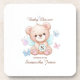 Celebrate the mom-to-be with a cute bear and butterflies personalized baby shower paper coaster. The front features the special event name along with the name of the mom-to-be as well as her monogram. Use the template to personalize.