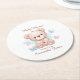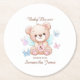 Celebrate the mom-to-be with a cute bear and butterflies personalized baby shower paper coaster. The front features the special event name along with the name of the mom-to-be as well as her monogram. Use the template to personalize.