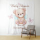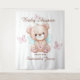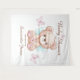 Consider this cute baby shower tapestry as part of your baby shower festivities. Makes a great backdrop. Features the special event name along with the name of the mom-to-be as well as her monogram. Bear & Butterflies design. Use the template to personalize.