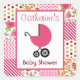 Baby Shower Pink Carriage & Girly Patchwork Square Sticker