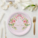 Baby Shower Pink Floral Crest Regency Bow Paper Plate