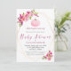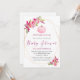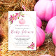 Sweet baby girl pink florals and rose gold geometric frames to celebrate your baby shower. A pink pumpkin at top. Edit text areas to create a unique and special baby shower party.