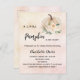 A rose gold and blush pink gradient background, decorated with a cream coloured pumpkin and flowers. Personalize and add the name and party details. Text: A little Pumpkin is on the way.