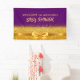 An elegant and glamourous gender neutral baby shower banner. Elegant violet, purple and golden sparkle background with a faux gold ribbon and bow. Golden hand lettered style script and the text; Baby Shower. Template for name/text.