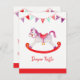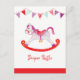 Hand-painted rocking hobby horse with stars and graphic bunting, baby shower diaper raffle cards. Perfect for you to request diapers or nappies so your guest can have a chance to win prizes at your baby shower. Original whimsical baby rocking horse watercolor painting in red and purple and graphic design by Sarah Trett for www.mylittleeden.com on Zazzle.