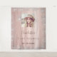 A welcome tapestry for a glamourous baby shower. A rose gold faux metallic looking background decorated with faux silver glitter dust. Personalize and add a high quality photo, a name and date.