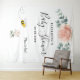 Elegant, classic, modern floral style baby shower banner, tapestry celebrating a baby girl. Decorated with a rose gold, pink and a white watercolored florals flowers and eucalyptus greenery. With the text: Baby Shower written with a large, modern black coloured hand lettered style script. Personalize and add the name of the mother to be, and a date.