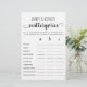 Purchase this game and enjoy high quality Baby Shower Scattergories card for your event! Gender neutral Black and White design.