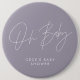 Baby shower script modern minimal lilac purple 6 inch round button