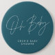 Baby shower script modern minimal teal blue 6 inch round button