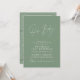 Baby shower script modern sage green elegant party invitation design. Ideal gender neutral design. Perfect coordinating autumn, fall winter baby shower design.