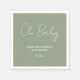 Baby shower script modern sage green elegant party napkin design. Ideal gender neutral design. Perfect coordinating summer, autumn, fall, winter baby shower design.