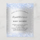 For an elegant and baby shower invitation, celebrating a baby boy. A faux silver metallic looking background. Decorated with light blue faux glitter. Personalize and add a name and details. Modern hand lettered style script