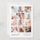 Un beau modèle moderne carré photo grille collage carte de remerciements est parfait pour remercier vos invités baby showers pour les cadeaux, l'amour, et le soutien reçu, et pour présenter votre nouveau-né au monde! Le design moderne comprend un collage de 12 photos personnalisables carrés. Ci-dessous, il y a un message "merci" et le nom et les statistiques de votre bébé, en lettres simples. Au dos se trouve votre message de remerciement personnalisable sous un petit coeur rouge. Grâce au bouton "personnalisation", vous pouvez remplacer les photos et modifier le texte.