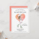 A whimsical cute peach baby shower sprinkle by mail invitation featuring an expectant mom walking with umbrella overlay on a peach pink heart and solid peach colour on the back of the invite.