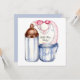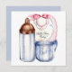 Baby Shower square invitation bib, bottle and cup