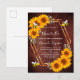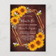 A rustic dark wooden barn wall as background. A faux gold geometric frame and happy smiling bumble bees. With the text: Mom to Bee and the name of the mother to be on front written with a modern hand lettered style script. White letters. Gender neutral.