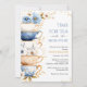 Accueillir un baby shower aussi charmant qu'une tasse de thé avec cette Time for Tea avec la maman-to-be Tea Baby shower Invitation. Conçu avec d'élégantes fleurs bleues et dorées et des tasses empilées de fantaisie, cette invitation est parfaite pour célébrer un bébé garçon dans le style sucré et high tea. Que vous planifiez un thé traditionnel de l'après-midi ou une soirée à thème, ce design ajoute une touche de classe et de plaisir à votre journée spéciale. Customisez votre texte facilement sur Zazzle pour créer une invitation personnalisée et élégante que vos invités aimeront.