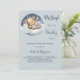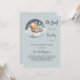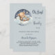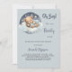 For a baby shower celebrating a baby boy. A blue grey background. A cute teddy bear sleeping on a cloud. Personalize and add the name of the mom to-be and party details. The name and the text: Oh Boy! and Bearly are written with a hand lettered style script.